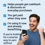 It’s a free app that helps people save money on everyday purchases, and it comes with a built-in rewards system that benefits both you and the people you share it with.